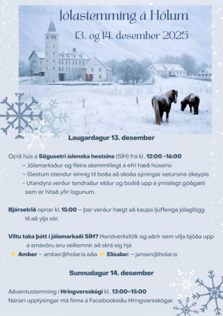 Helgina 13. og 14. desember verður upplagt að leggja leið sína á Hóla í Hjaltadal og njóta notalegrar jólastemningar. Hátíðarblær verður yfir bænum þar sem gestir geta notið menningar, handverks, ljúffengra veiting og útivistar á þessum fallega og sögufræga stað.